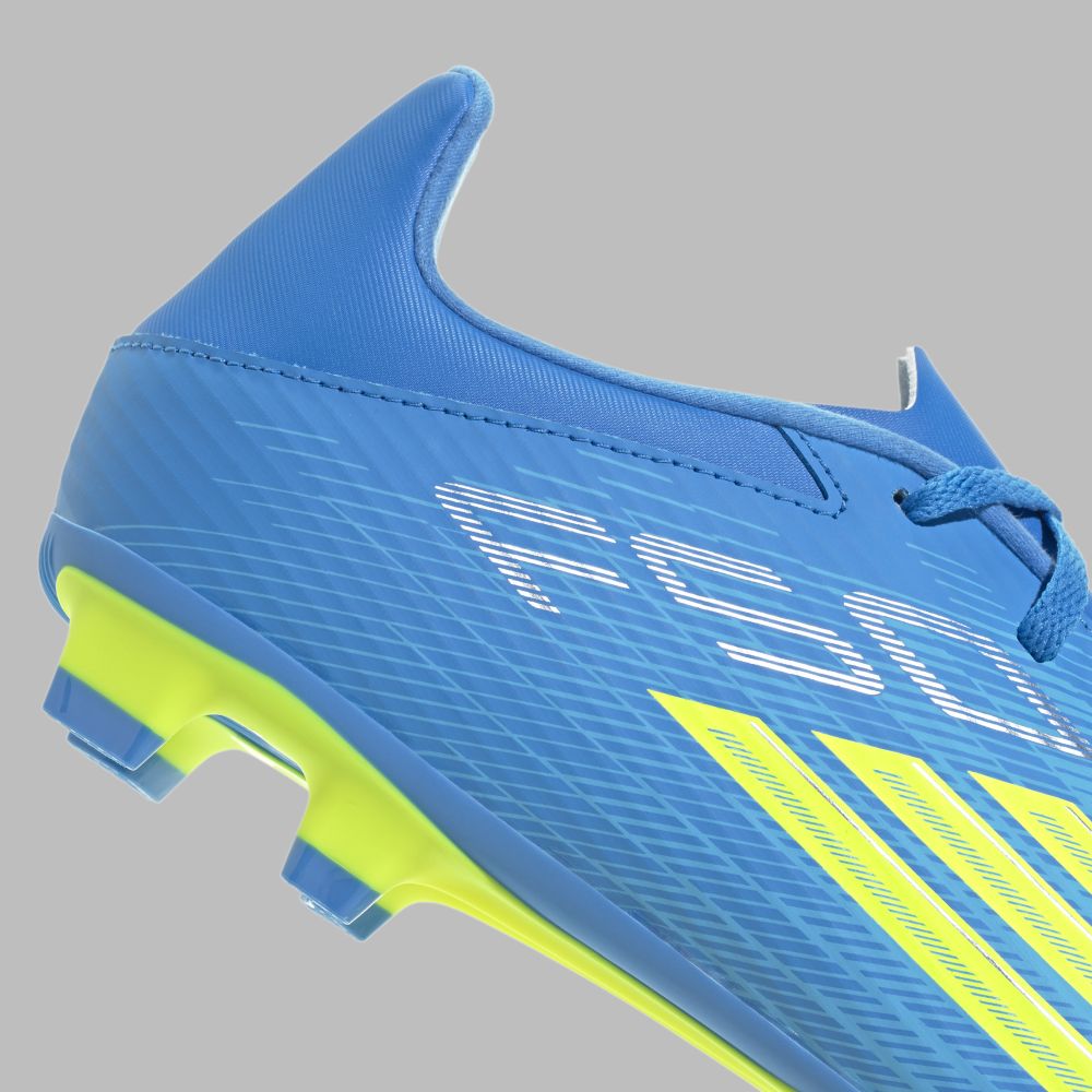Diseñados para pies rápidos y mentes ágiles, los Guayos F50 Club para terreno firme/multiterreno aportan un control liviano y un toque seguro en cada partido. La parte superior Fiberskin cuenta con líneas 3D estratégicamente colocadas que mejoran el toque del balón y proporcionan una sensación de ligereza. Los jugadores apreciarán la agilidad, que les ayudará a moverse con menos fricción por la cancha. La lengüeta sintética flotante incluye perforaciones que aumentan la ventilación y la comodidad. La suela exterior está diseñada especialmente para favorecer la tracción en una gran variedad de superficies de pasto natural y sintético. Este producto contiene al menos un 20% de material reciclado.